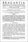 Item Melhoramento do cafeeiro: XXX- Produtividade de progênies de café em Pindorama(Instituto Agronômico (IAC), 1965-05) Monaco, L. C.; Carvalho, A.; Scaranari, H. J.Numerosas progênies de café foram já analisadas quanto ao desenvolvimento, produção e tipos de sementes, concomitantemente, em Campinas, Pindorama, Ribeirão Prêto, Mococa, Jaú e Monte Alegre do Sul. Aquelas que se revelaram de maior capacidade adaptativa foram estudadas com maiores detalhes, em ensaios comparativos, nessas mesmas localidades. Um dêsses ensios foi plantado na Estação Experimental de Pindorama, em 1953, e teve produções controladas por 10 anos, de 1955 a 1964. Compreende nove linhagens, sendo três do 'Mundo Nôvo', quatro de 'Bourbon Amarelo' e duas derivadas de híbridos entre o 'Bourbon Vermelho' e 'Típica' e 'Bourbon Vermelho' e 'Amarelo de Botucatu'. Os dados obtidos são relatados e indicam, quanto à produção, que as progênies do 'Mundo Nôvo' P516 e P515 são as mais promissoras. Apenas uma progênie do 'Bourbon Amarelo' mostrou-se dentro do mesmo grupo das seleções do 'Mundo Nôvo ', embora, aproximadamente, 27% menos produtiva do que a progenie P516. As progênies do 'Mundo Nôvo' revelaram ter sementes maiores e maior porcentagem de sementes do tipo chato. As porcentagens de sementes moca e concha foram menos variáveis, sendo que também as seleções do 'Mundo Nôvo' apresentaram menor frequência de moca e igual quantidade de concha.Item Melhoramento do cafeeiro: XXIV- Variação na produtividade de cafeeiros importados, com referência especial ao material da Etiópia e do Sudão(Instituto Agronômico (IAC), 1962-02) Carvalho, A.; Monaco, L. C.; Scaranari, H. J.Um grupo de 67 conjuntos de cafeeiros procedentes do Departamento de Agricultura dos Estados Unidos foi recebido, em 1953, em Campinas. Destes conjuntos, 8 são oriundos da Etiópia, aí coletados por P. Sylvain, 10 de Tanganica e Quênia, porém de origem etiope, 11 correspondem a seleções da Índia, 24 de Tanganica, 10 de Quênia, 1 da Congo e 3 do Sudão2. Em vista do número variável de plantas por conjunto, foram êles plantados em Campinas em dois ensaios comparativos, tendo como testemunhas linhagens selecionadas dos cultivares 'Bourbon Vermelho' 'Bourbon Amarelo' e 'Mundo Novo'. Analisaram-se o desenvolvimento dos cafeeiros, o seu vigor vegetativo, produção total de café cereja em cinco anos, tipos de sementes produzidas, tamanho das sementes do tipo chato e ocorrência de frutos com lojas sem sementes, fazendo-se referência especial aos conjuntos da Etiópia e do Sudão. Notou-se acentuada variabilidade no que concerne a êstas características nos conjuntos de procedência etiope. Assim, quanto à altura média dos cofeeifos, 8 conjuntos mostraram-se bem crescidos e 10 deram altura mais reduzida e, quanto ao vigor, apenas 5 conjuntos revelaram-se promissores. Dentre êstes, os de melhor aspecto vegetativo são o café 'Harar', 'Amfillo', 'Dalle Mixed' e 'Dilla' e, o pior deles, o 'Ennarea'. Os três conjuntos do Sudão não apresentam bom aspecto vegetativo. Quanto à produção, os conjuntos 'Harar', 'Tafari Kela', 'Gimma Tana , 'Amfillo', 'Dilla & Alghe' mostraram-se produtivos, enquanto o 'Ennarea', 'Mattu', 'Gimma Galla Sidamo', 'Gimma Mbuni' deram as piores produções dos ensaios, indicando a sua falta de adaptação ao nosso meio. Também os cafés do Sudão mostraram-se pouco produtivos. O conjunto 'Harar', além de ter produção comparável ao melhor testemunha do ensaio, encerro algumas plantas com maturação dos frutos tardia, de certo interêsse no plano de melhoramento. Notou-se também acentuada variação no comportamento das seleções do Quênia e Tanganica, mostrando-se algumas promissoras e outras reduzidas. Quase todas as seleções da Índia, ao contrário, comportaram-se mal. As porcentagens de semente do tipo chato revelaram-se abaixo de 80 por cento em 9 dos 18 conjuntos da Etiópia e apenas os cultivares 'Harar', 'Dalle Mixed' e 'Erithean Moca' deram quantidades maiores destas sementes. Os três conjuntos do Sudão deram porcentagem abaixo de 80. As do tipo moca atingiram porcentagens elevadas, acima de 15 por cento, em 14 dos 18 conjuntos, enquanto as do tipo concha são em quantidades normais em 15 conjuntos, sendo mais elevadas no café 'Ennaera' e 'Dilla'. Os três conjuntos do Sudão têm elevada quantidade de sementes do tipo moca e baixa quantidade de sementes do tipo concha. O tamanho dos grãos do tipo chato mostrou-se favorável em cinco conjuntos, sendo que o 'Harar' tem peneira das mais altas. Os dados mostraram que o aproveitamento dêste material da Etiópia poderá ser feito sòmente mediante seleção para tipos de sementes normais. O conjunto da Índia revelaram-se os menos promissores no que se refere às porcentagens de sementes do tipo chato. A constatação da ocorrência de plantas com elevada quantidade de frutos chochos, sem sementes, mostrou que o defeito ocorre em alguns conjuntos da Etiópia, Tanganica, Quênia e particulamente na Índia. A análise morfológica efetuada indicou que os conjuntos 'Harar', 'Gimma Tana', 'Ennaera', 'Tafari Kela', 'Agaro' e 'Gimma Mbuni' devem constituir variedades botânicas novas e que os cafés 'Harar', 'Tafari Kela', 'Amfillo', 'Dilla' e 'Dilla & Alghe' são promissores, podendo de ser utilizados no plano de melhoramentos em execução em Campinas.Item Melhoramento do cafeeiro: XVII- Seleção do café maragogipe A.D.(Instituto Agronômico (IAC), 1960-05) Monaco, L. C.Progênies de café Maragogipe A. D. derivadas de 115 plantas matrizes selecionadas na região de São José do Rio Pardo e Mococa, foram plantadas em Campinas, em 1936 e 1937. Estas progênies foram divididas em três grupos, a saber: grupo A, constando de um conjunto de 62 progênies provenientes de sementes obtidas de flores de polinização aberta, plantadas em 1936 em linhas de 20 cafeeiros cada uma; grupo B, com 53 progênies com 10 plantas cad